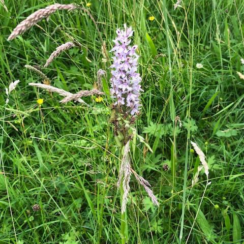 As we stride purposefully into harvest season (the scribes got to the lettuce before the slugs did, but it was a tie with the birds for the red currants) the wildflower patch is looking more like a meadow and less like someone couldn’t be bothered to cut the grass. The spotted orchid has gone from flowering to developing seed pods. Fingers crossed that the seeds will mature enough to make more spotted orchids.