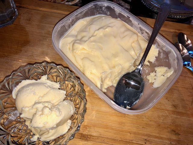 This method of making ice cream is not so far off how it used to be made in the days before freezers. A large bowl was placed inside a tub filled with ice and salt (the salt lowers the freezing point and chills the ice cream faster). The rest is more or less the same apart from the bit about using an electric whisk.