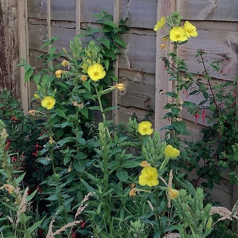 The scribes haven’t made a full list of all the plants growing. Some of the annuals from last year didn’t make it, but there have been new arrivals such as the evening primroses and ragged robin.