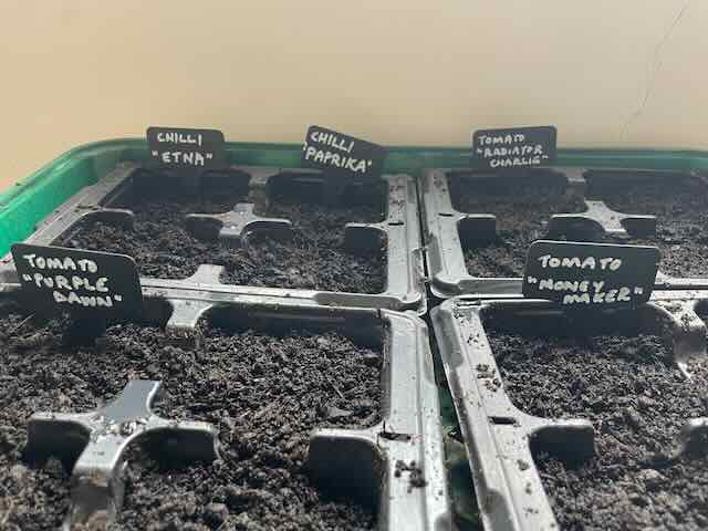 That said, the first seeds of the season have been sown, starting with the tomatoes (Moneymaker, Radiator Charlie’s Mortgage Lifter, and “Purple Dawn”), and chilli peppers (paprika and Etna). “Purple Dawn” is a made-up name, as I don’t know the variety. Thinking about it, they’re all made-up names.