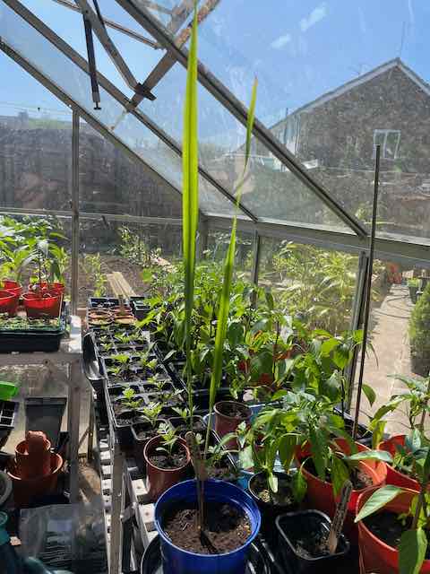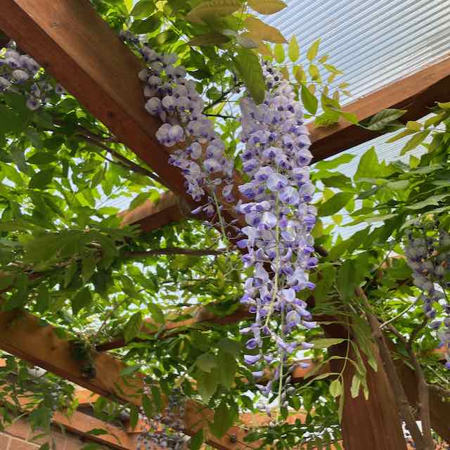In the greenhouse, the hot chilli peppers grown from seeds saved from the Christmas Eve rendang are starting to fruit. The milder chillis (which look exactly the same) are further behind, despite being sown at the same time, and have yet to flower. The various tomato plants are coming along nicely. On the veranda, the harsh pruning the wisteria received last year is paying off as there are the most flowers it has ever had in bloom. The scent is exquisite.