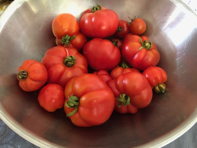 At the end of summer, there is always a glut of green tomatoes from the kitchen garden. Even ripening the best of these using the brown paper bag and a banana trick leaves tomatoes that will never ripen. This is when Mrs Pritchett steps in to make her celebrated green tomato chutney. This is her standard offering for the harvest festival and makes a good gift if you happen to know a lot of people who like green tomato chutney, as it makes a bucket load of the stuff.