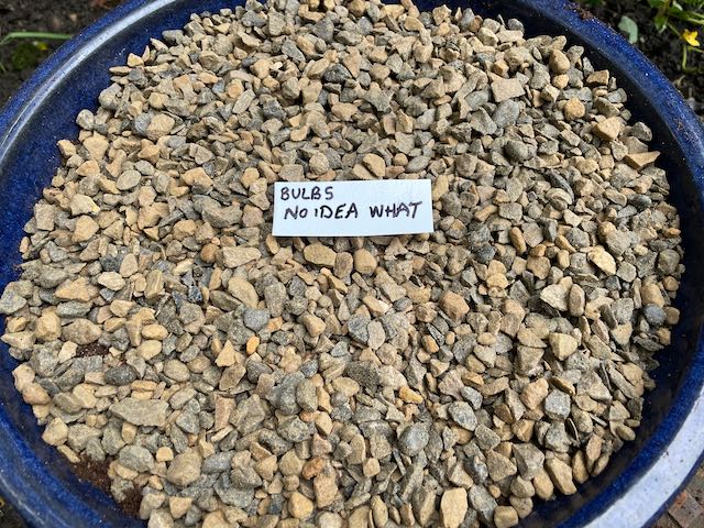 After the September Scything, the wildflower meadow is looking more like a regular lawn. The dried stems of the Spotted Orchids have been cut down now that they have set seed (which is more like dust). The evening primrose is just about done flowering, and the seed is ripening. The red clover is still going strong. Lots of spring bulbs have been planted for next year, and yellow rattle seeds have been scattered. Being good gardeners (and having learnt from past mistakes), the scribes have labelled what they have planted. Sadly, for one pile of bulbs they dug up and replanted, the label is not exactly helpful.